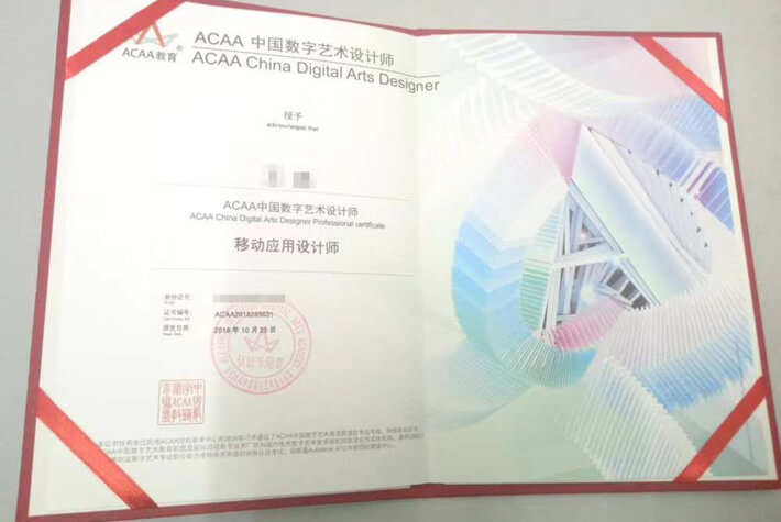 学生在学完UI课程专业后可考取ACAA艺术类证书。